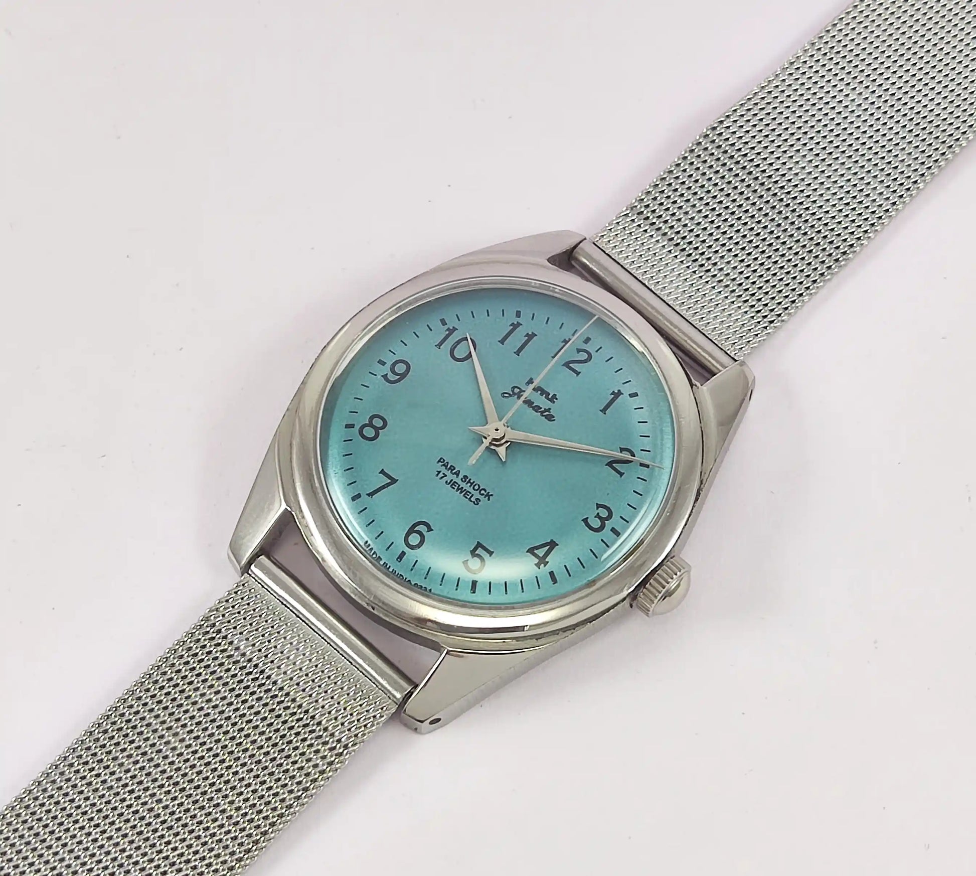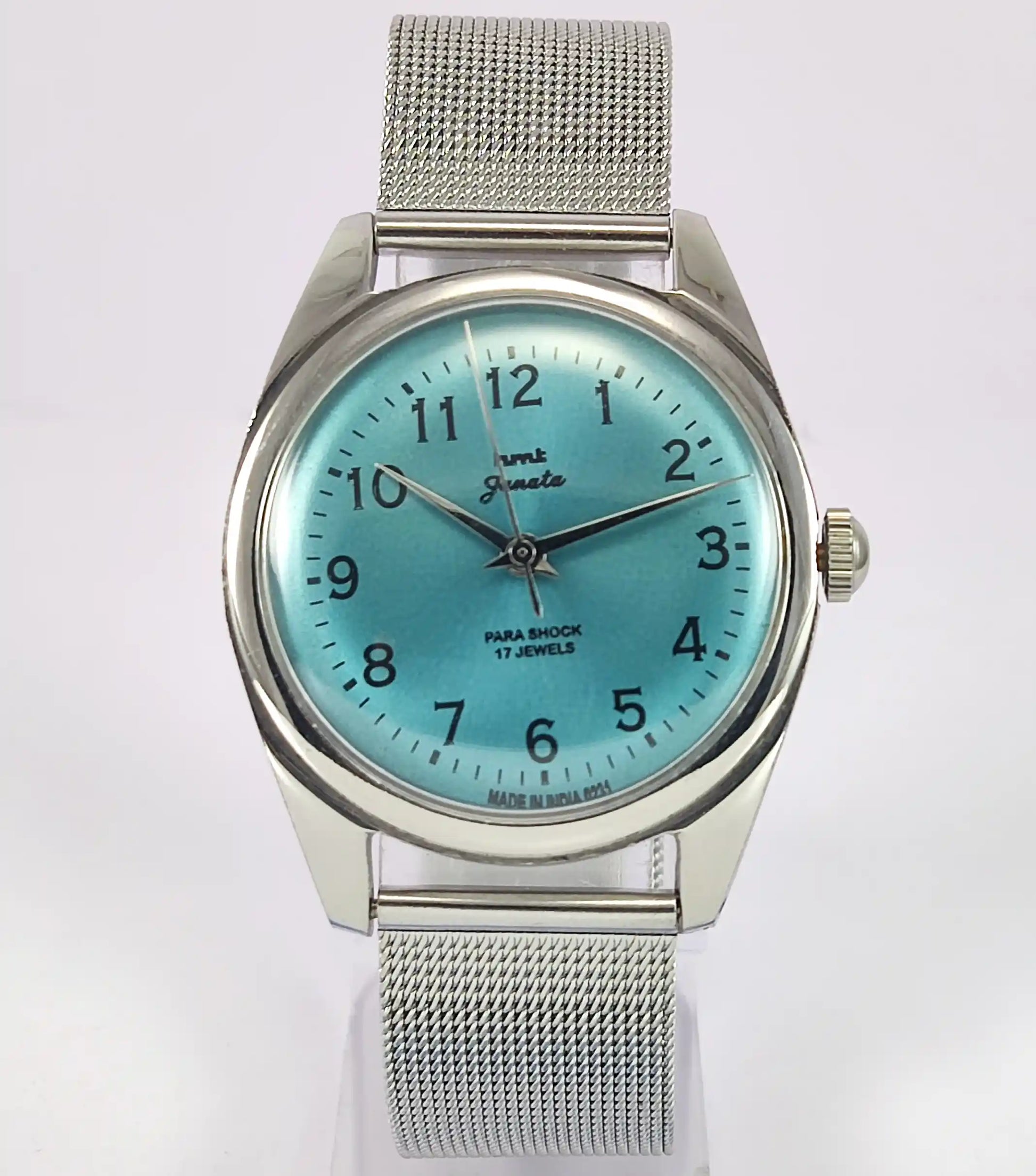 HMT Janata English Numerals Tiffany Blue Para Shock 17 Jewels Watch