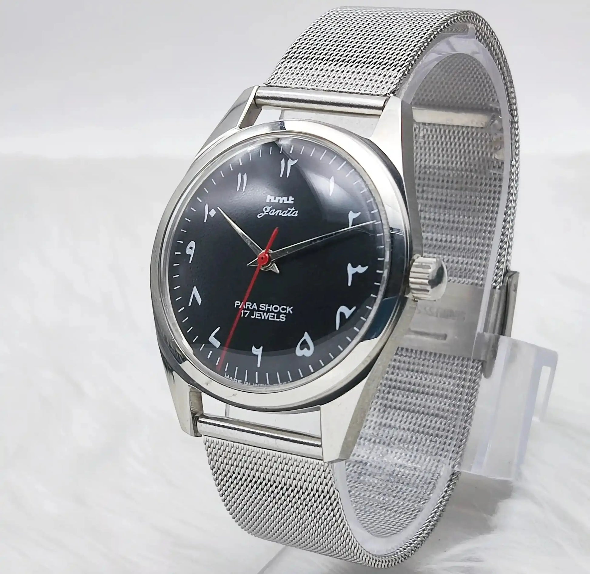 HMT Janata Handwinding 17 Jewels Arabic Black Dial Transparent Back