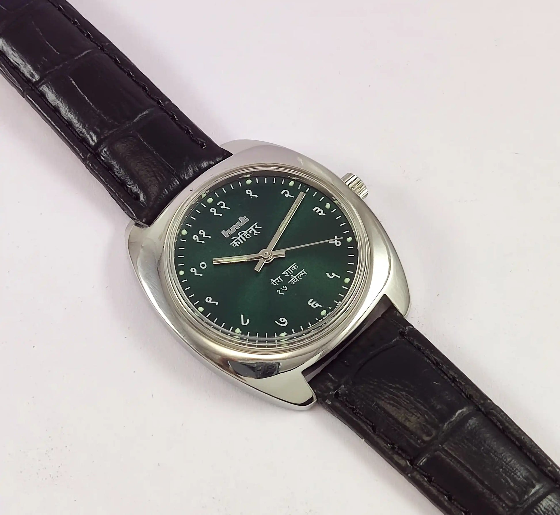 HMT Kohinoor Devanagari Font Green Dial 17 Jewels Para Shock