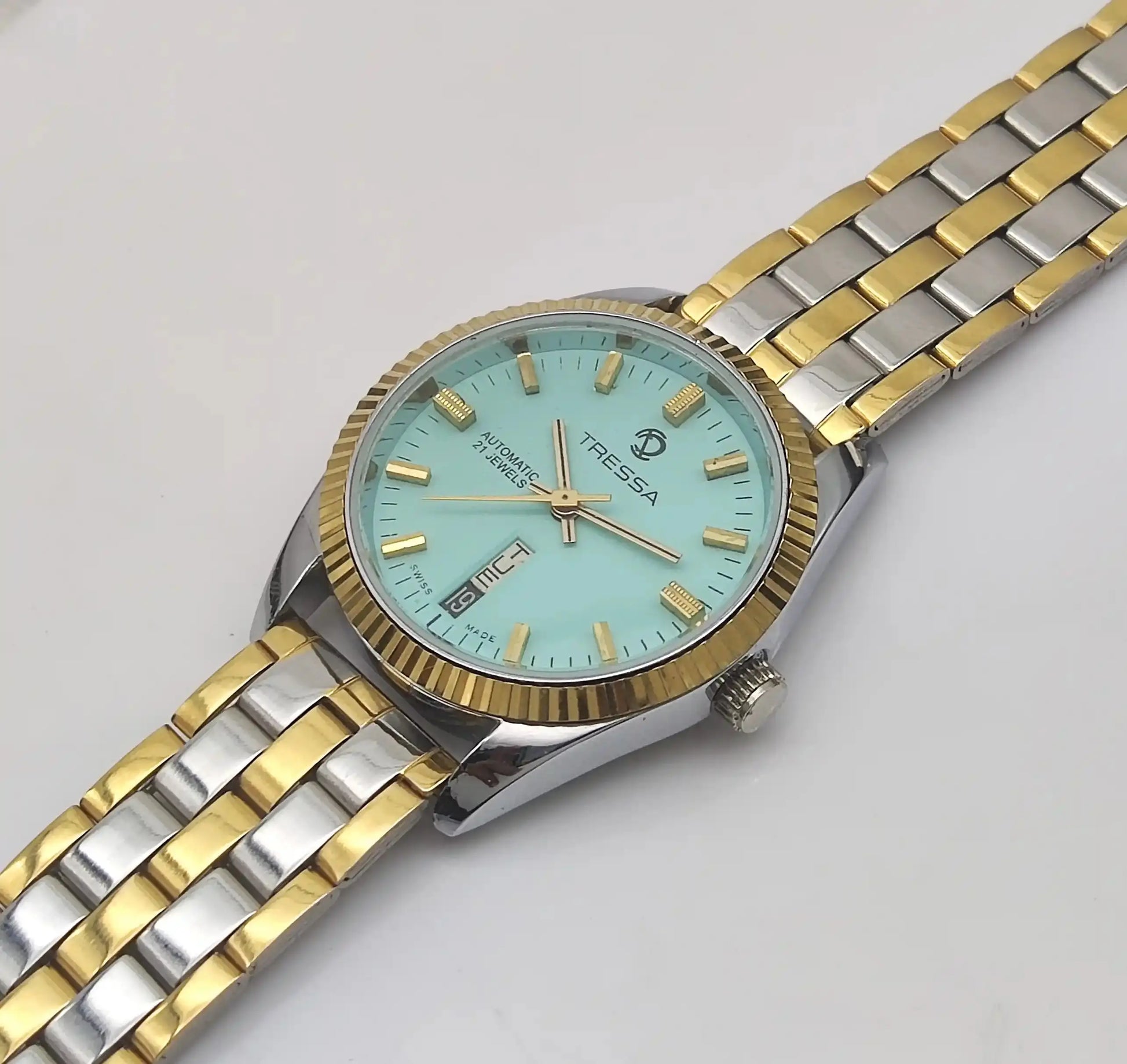 Tressa Turquoise Dial 21 Jewels Day Date Swiss Made Automatic Watch